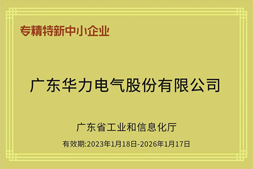 近日,省工信廳公布《2022年“專精特新”中小企業(yè)和2019年到期復(fù)核通過企業(yè)名單公示》。廣東華力電氣股份有限公司成功獲評(píng)“2022年度廣東省專精特新中小企業(yè)”。