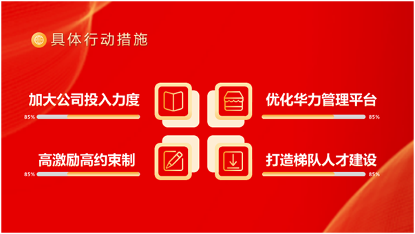 1、加大公司投入力度;2、優化提升華力管理平臺;3、貫徹高激勵高約束機制;4、打造梯隊人才建設。李總針對4方陣做了詳細的解釋和重要舉措,各部門經理認真聽取,積極研討。